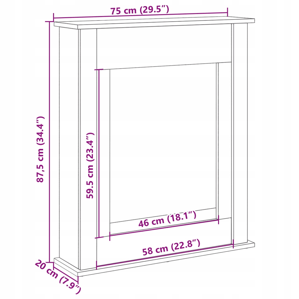 Корпус для електричного каміна з полицею, дерево, чорний, 75x20x87,5 см