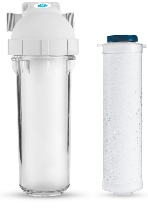 корпус фільтра, призначеного для встановлення для встановлення, близької до точки збору води. Спеціальна конструкція дозволяє легко замінити фільтрувальні картриджі, розміщені всередині нього. Підходить до всіх типів картриджів DAFI та інших 10 -дюймових вставок.