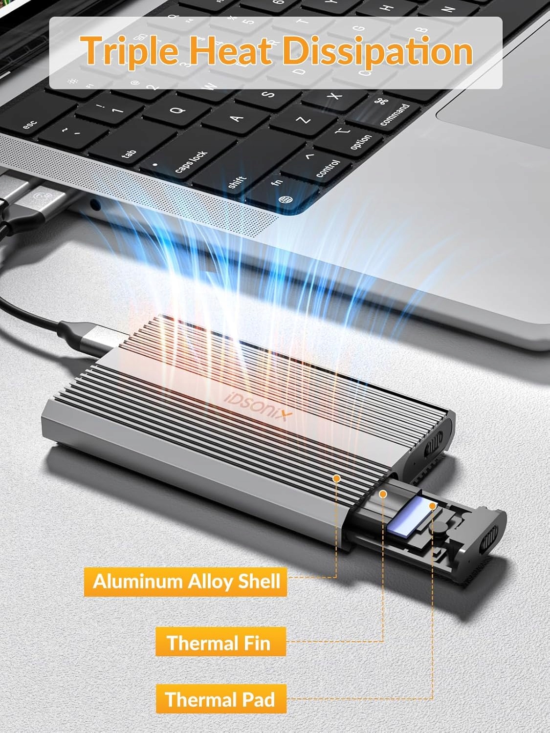Високоякісний корпус диска IDSONIX EHM-2-2N, розроблений для накопичувачів M.2 NVMe SSD, є компактним і ефективним рішенням для людей, яким потрібен швидкий доступ до даних у сучасному стилі. Виготовлений із міцного алюмінію, він забезпечує чудове розсіювання тепла та ефективний захист накопичувача.