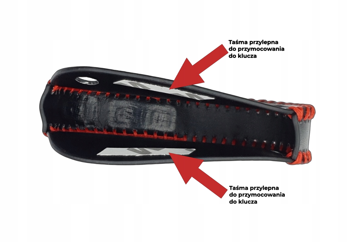 Пропозиція включає футляр, нову кришку ручної роботи виготовлено з шкіри з поліуретановою підкладкою з червоною строчкою для моделей KIA з 2018 року - версія з стрілкою (не SMART) 3 кнопками з карабіном: