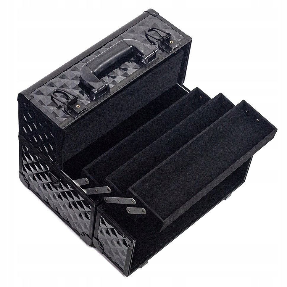 Чудовий косметик для любителів оригінального поєднання структур і неповторного блиску в ексклюзивному дизайні. Оптимально підібраний розмір кейса дозволяє зберігати косметику, гібриди, аксесуари та обладнання. Це дозволить організувати ваш туалетний столик і при цьому не займе багато місця. Також ідеально підходить для візажистів і майстрів манікюру. Міцний, складний, що забезпечує комфорт використання. Має оригінальну 3D текстуру, що імітує грані діаманта. Ідеально підходить як подарунок, так і для професіоналів - візажистів або майстрів манікюру. Є можливість кріплення плечового ременя для зручного транспортування чохла. Виглядає феноменально і прикрасить будь-який туалетний столик.