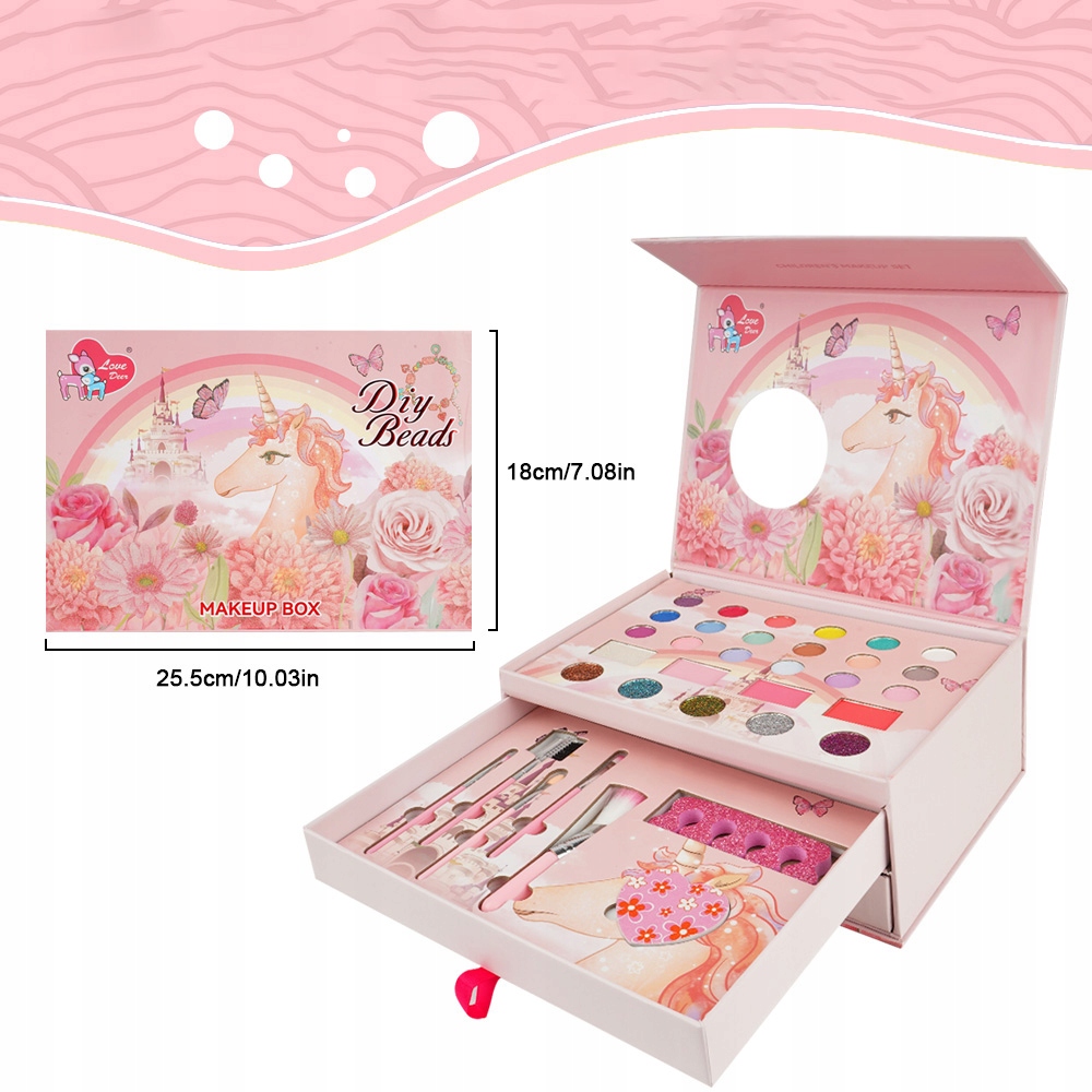 вкладка для косметики підходить для маленьких дівчаток для використання всередині та зовні. Це вишукано, легке і легко переносити. Підходить для маленьких дівчаток носити всередині та зовні, і ви можете грати з ним у будь -який час у будь -який час, наприклад, події подорожей.