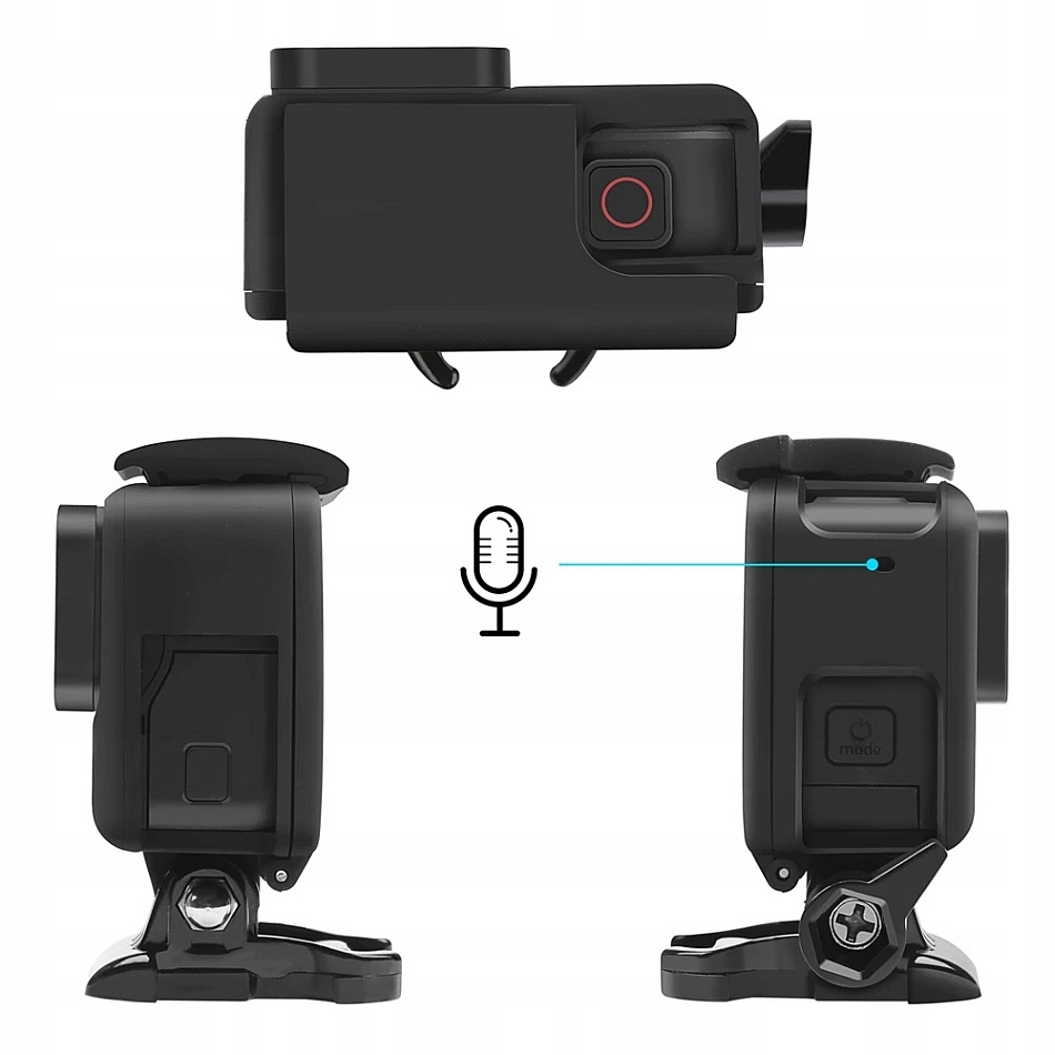 Кріплення для рами Рама дозволяє встановити Камера GoPro Hero 7 BLACK / Hero 6 BLACK / Hero 5 BLACK у всіх системних кріпильних елементах (як оригінальних GoPro, так і замінних) без необхідності використання зовнішнього водонепроникного корпусу. Рамка є ідеальним аксесуаром для всіх людей, які займаються спортом, де немає контакту з водою, і важлива краща якість звуку та зображення.