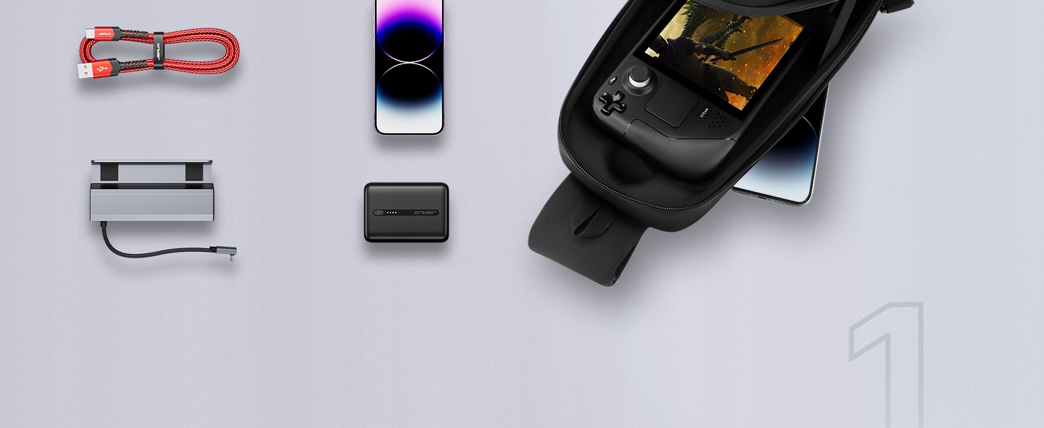 Багатоповерховий простір, який відповідає різним вимогам, включаючи унікальну кабіну для парової палуби, OLED та союзника ROG. Розміри, такі як JSAUX Steam Pead, PowerBank, мережевий живлення, мобільні телефони, USB C, Switch тощо