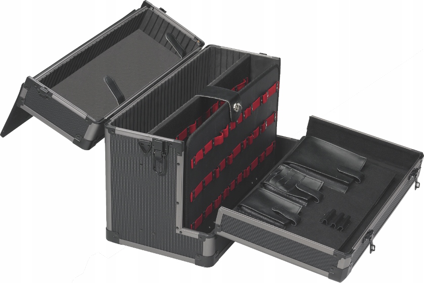 - інноваційний спосіб відкривання валізи дозволяє швидко переглянути весь її вміст, що значно скорочує час, необхідний для пошуку потрібного інструменту;