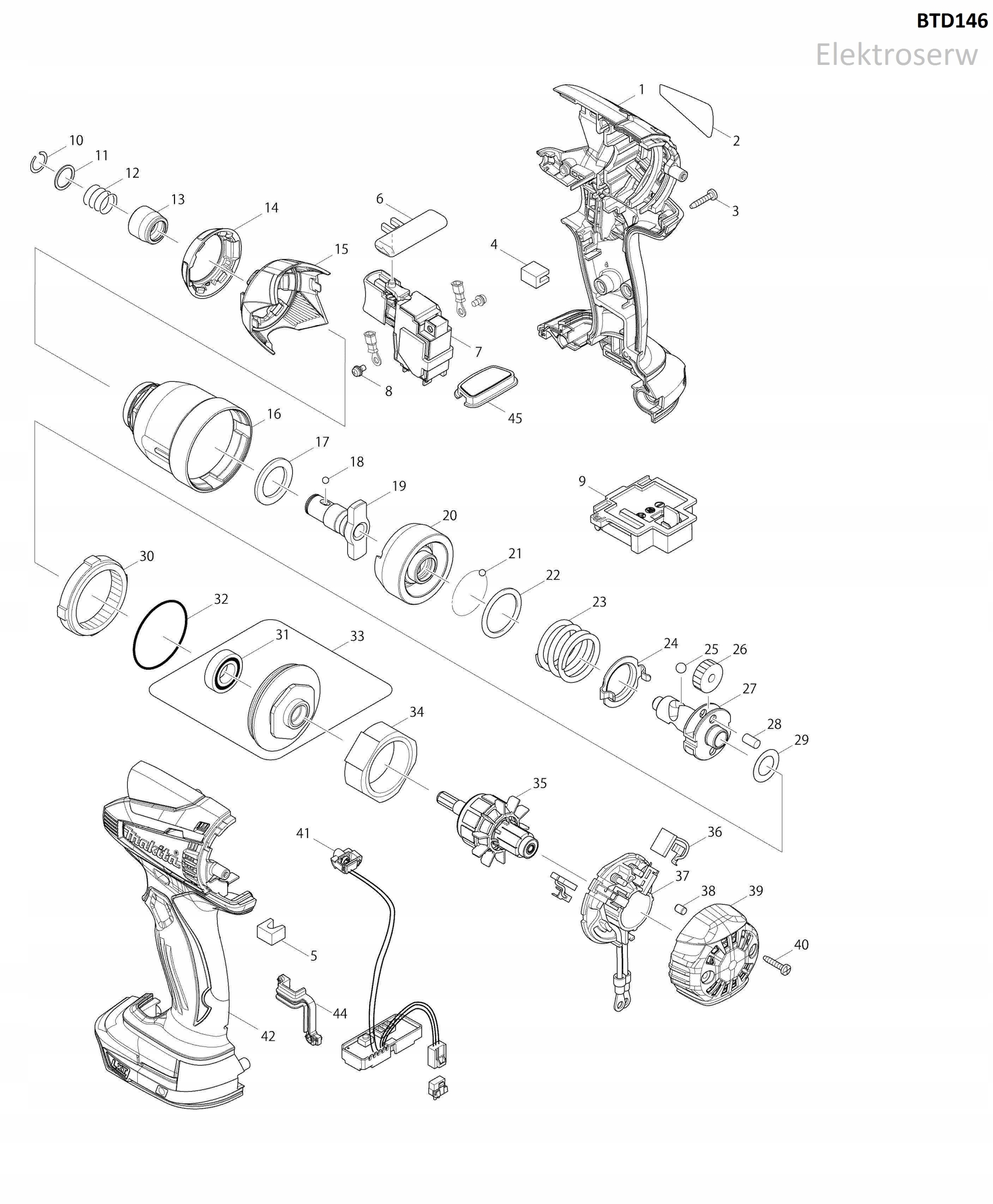 * Корпус Makita для акумуляторного шуруповерта BTD146 DTD146