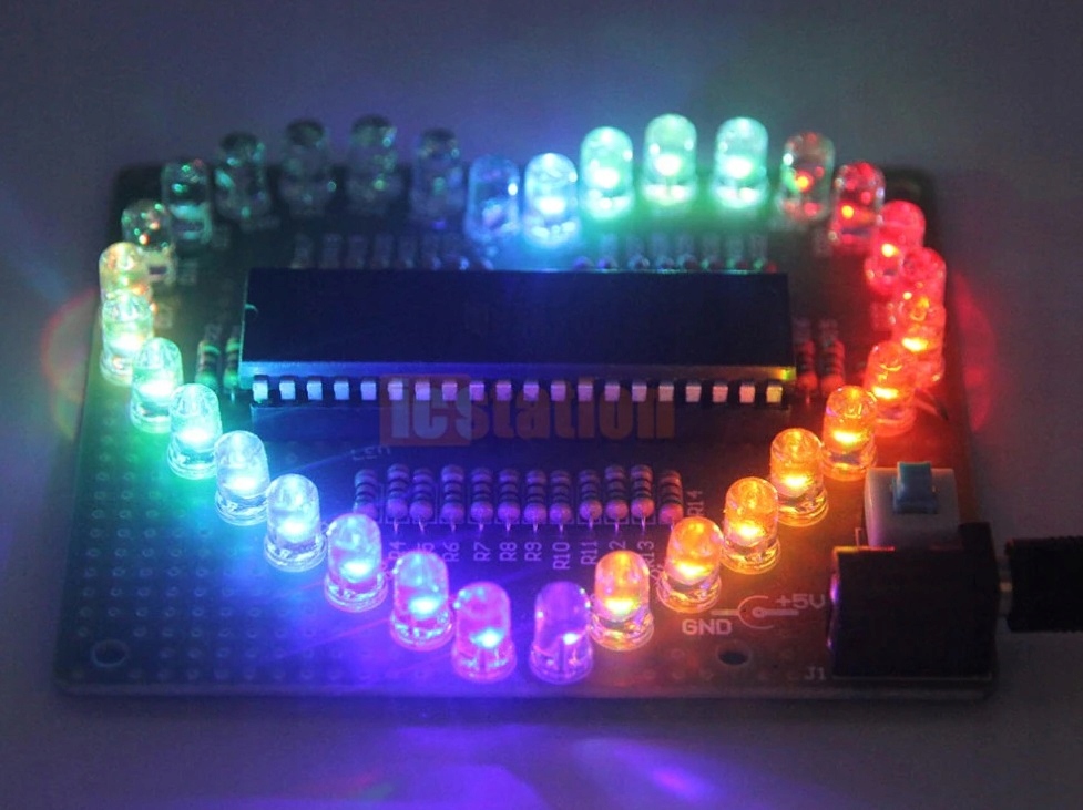 Система з 32 світлодіодів RGB, що керуються одним мікропроцесором STC89C52 51. Система після складання, красива мульти - кольорові презентації, вражаюча анімація