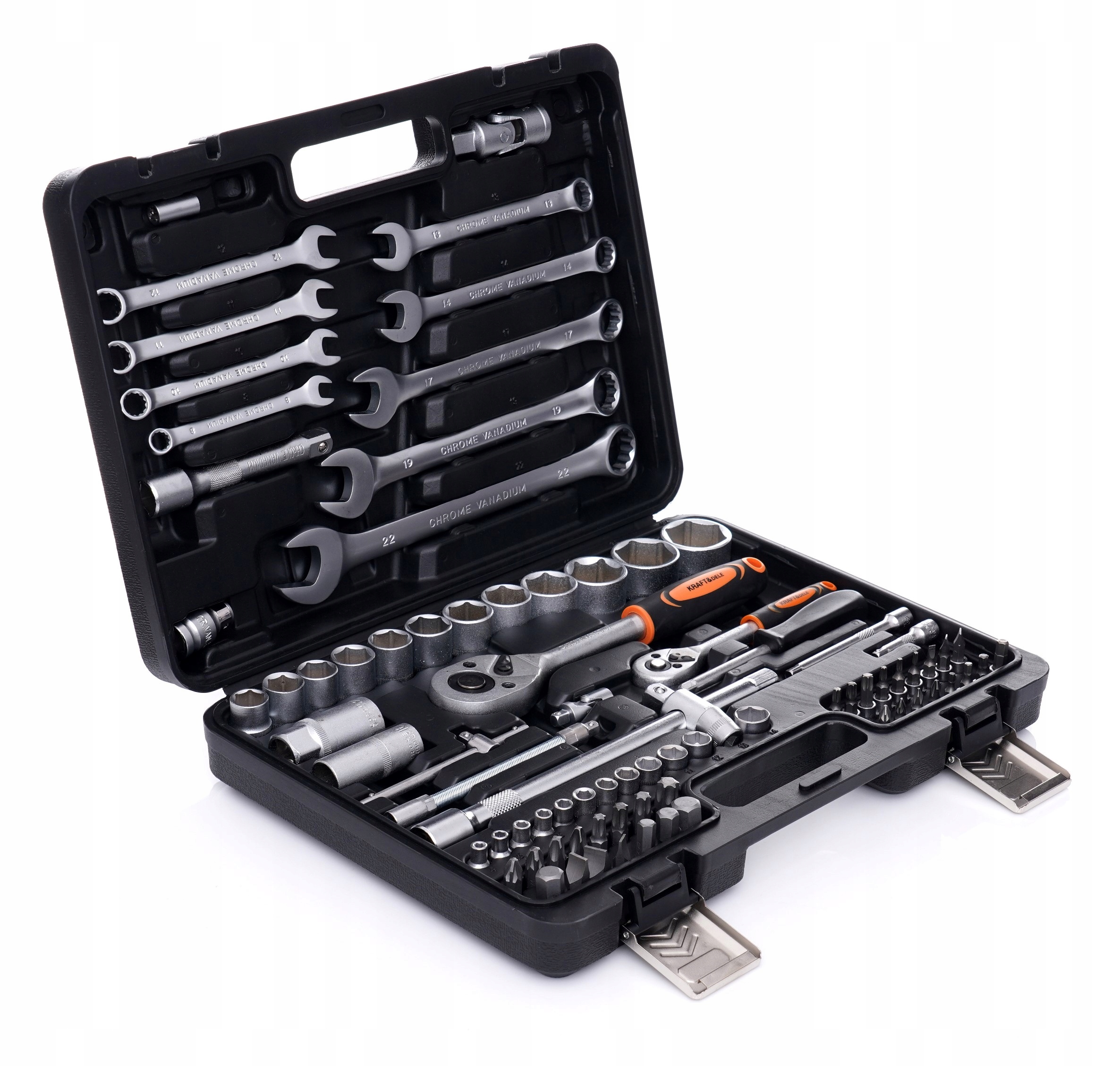 Набір складається з 82 елементів. Кожен з них виготовлений з високоякісної сталі. Завдяки цьому інструменти можна використовувати для роботи, яка потребує великої сили, не боячись їх пошкодити.