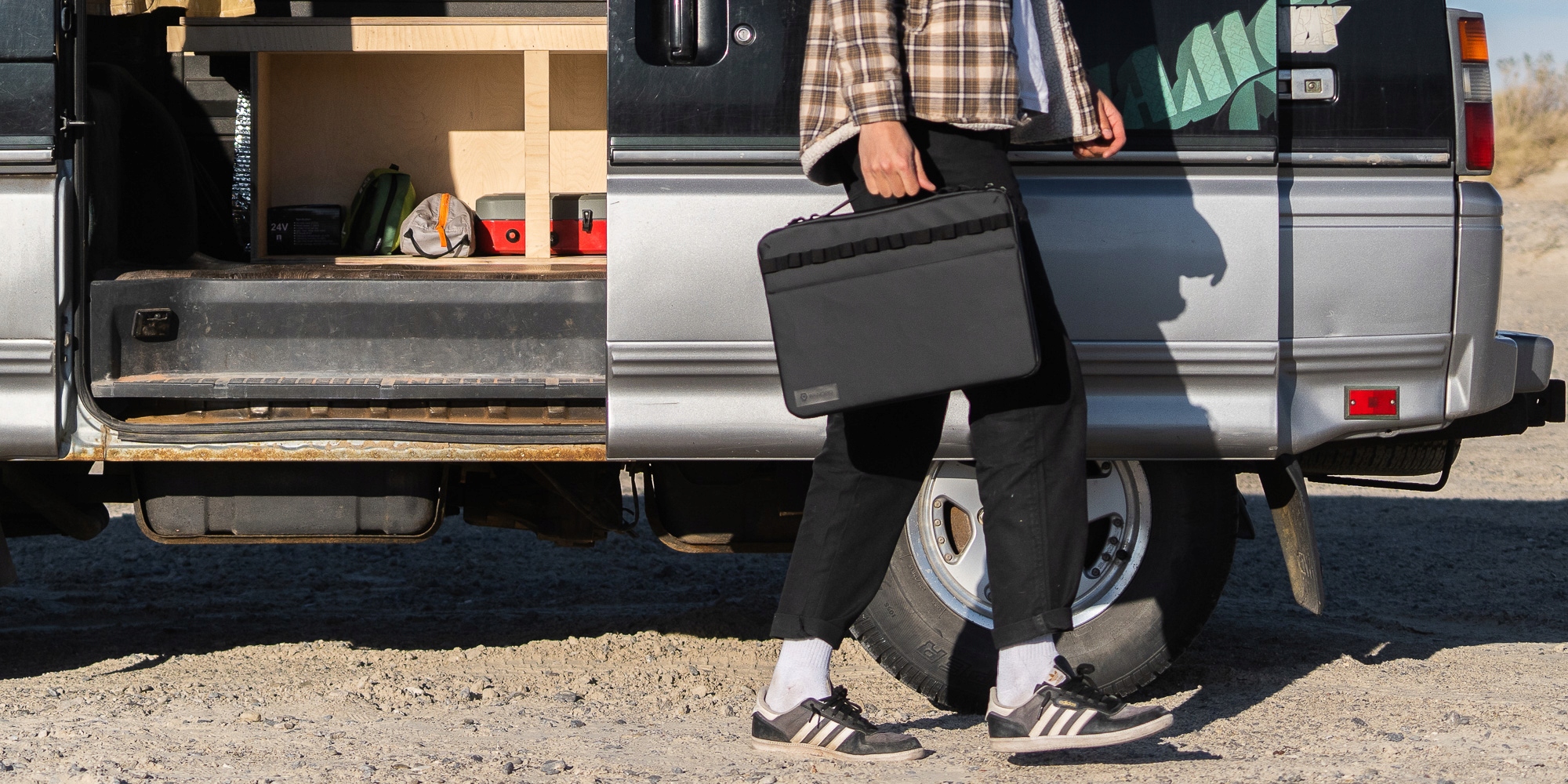 Чи не тільки ви дбаєте про безпечний та комфортний транспорт комп'ютера, а й про зручності, пов’язані з Мобільність та ергономіка роботи поза вашим домом? Корпус ноутбука Wandrd за кілька секунд може перетворитися на зручну позицію. Опікуйтеся про прямий кут клавіатури та ще більший комфорт роботи великого ноутбука - на поїзді, літаку, ліжку або на туристичній стежці. Від Справа про ноутбук Wandrd 16 "Справа ноутбука Wandrd.