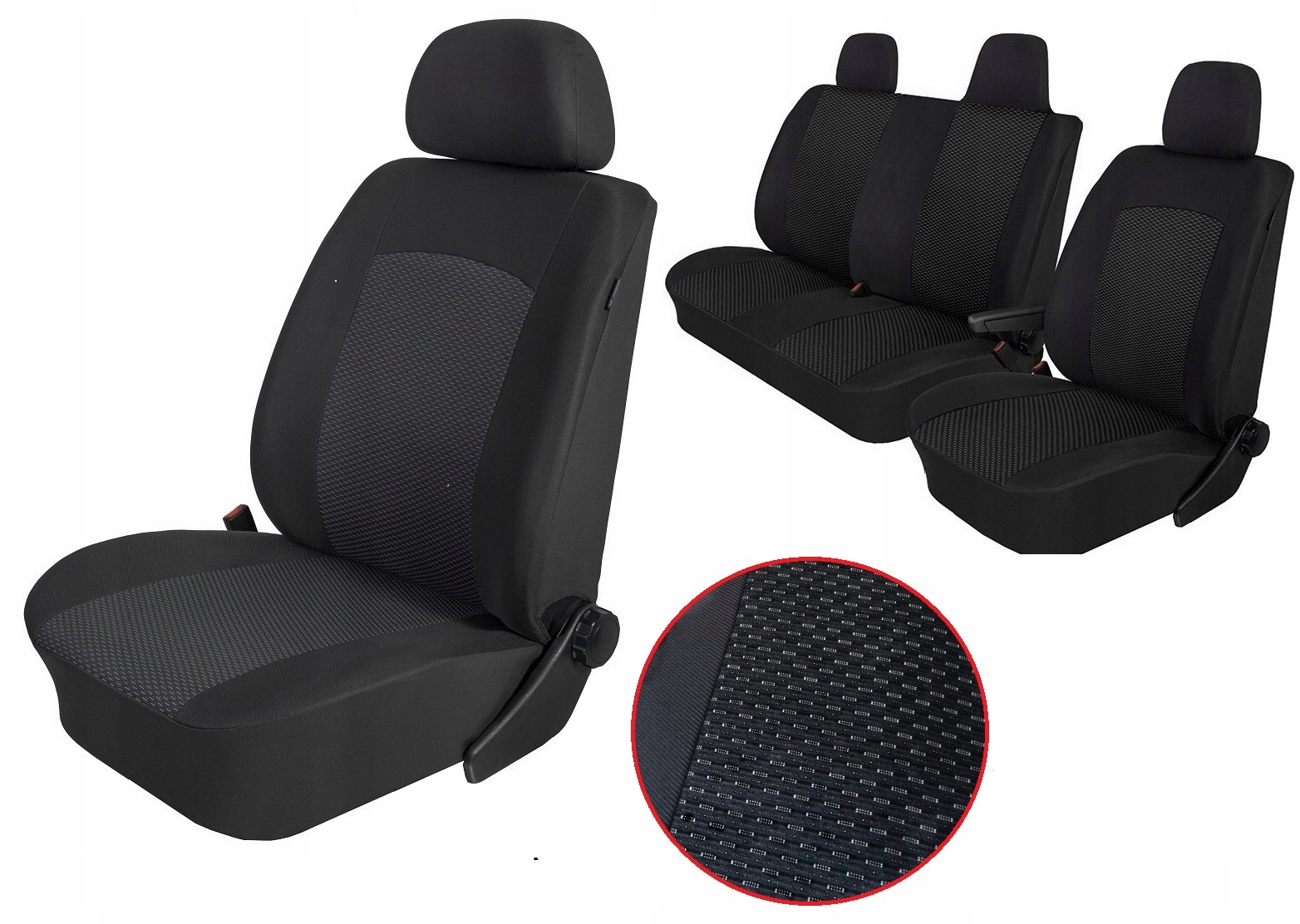Чехли виготовлені з оббивної тканини в зоні сидіння та посиленої поліестерової тканини з боків і спинки сидінь. Вони ламіновані 3 мм пінополіуретаном і підкладкою, завдяки чому матеріал ідеально прилягає до крісел.
