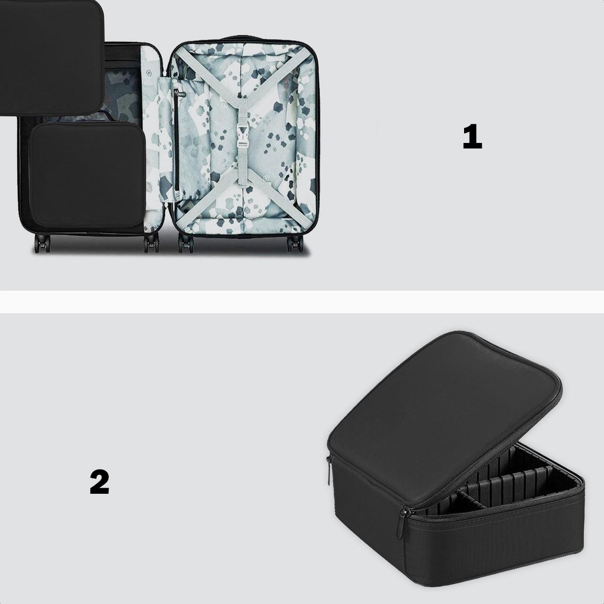 - Завдяки регульованим роздільникам ви можете адаптувати макет валізи до своїх потреб і створювати добре організований простір.