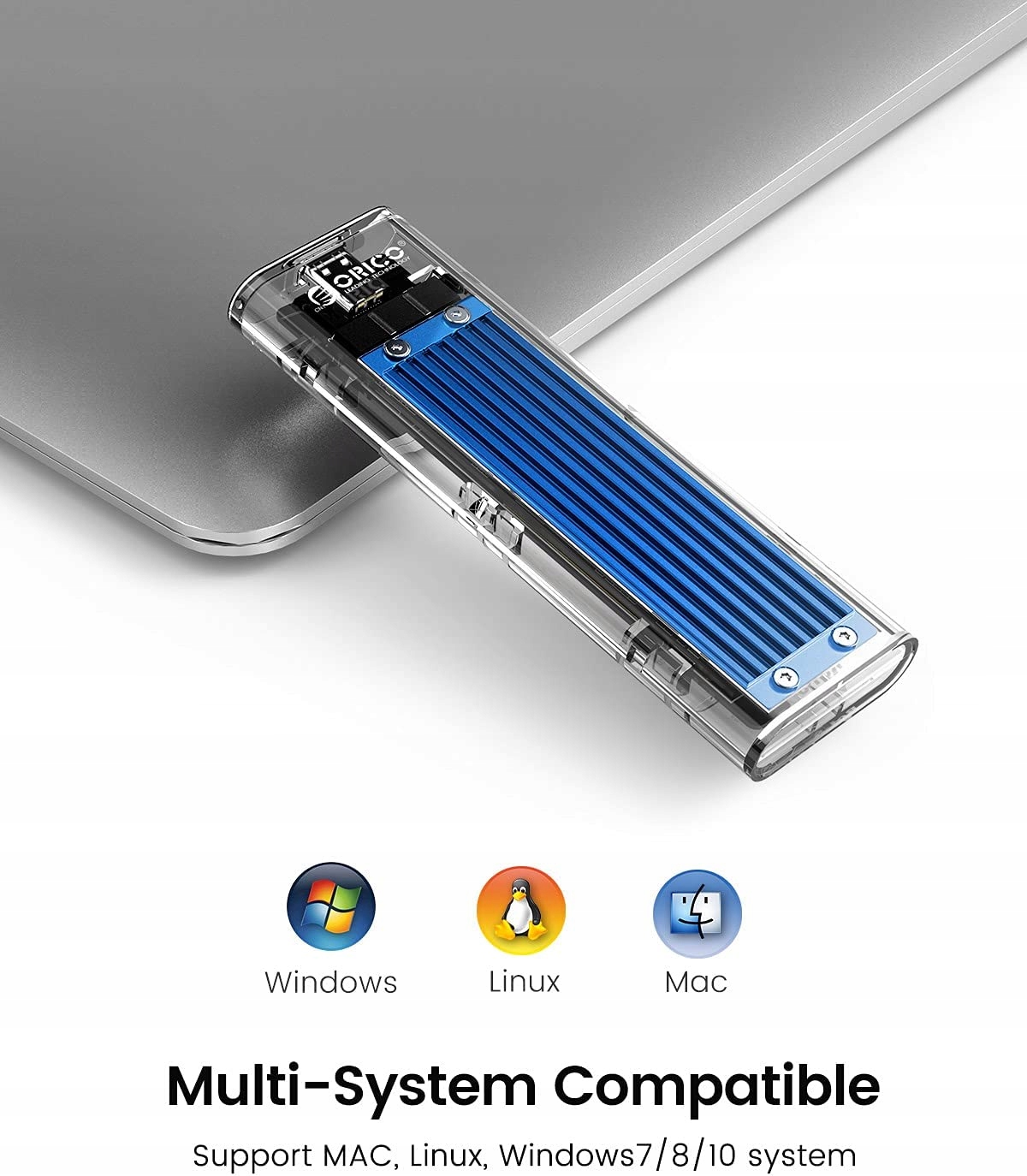 - 【Простий у використанні】Просто вставте SSD у ORICO M.2 Portable M.2 Case, прикріпіть SSD за допомогою гвинта і підключіть пристрій. Не потрібен драйвер, підтримка Plug & Play і Hot Plug. Синє світло вказує на те, що зовнішній жорсткий диск працює.