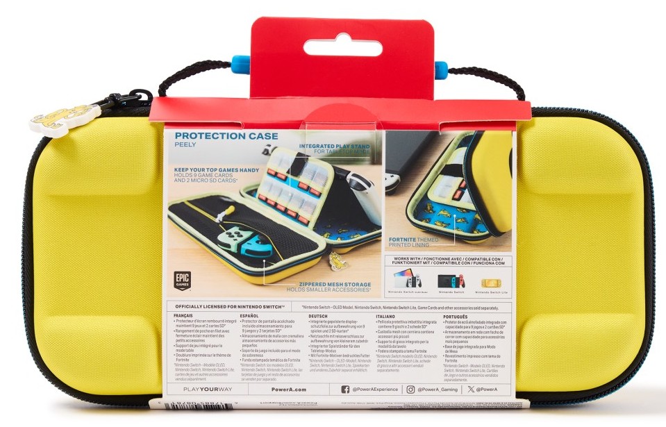 Power Fortnite Peely Case дозволяє приймати перемикач Nintendo, Nintendo Switch Lite або Nintendo Switch OLED -консоль. Обкладинка міцна і компактна, і в той же час було розроблено, щоб відповідати будь -якій моделі консолі Nintendo. 4 Цей портативний випадок дає вам свободу грати з Nintendo Switch.