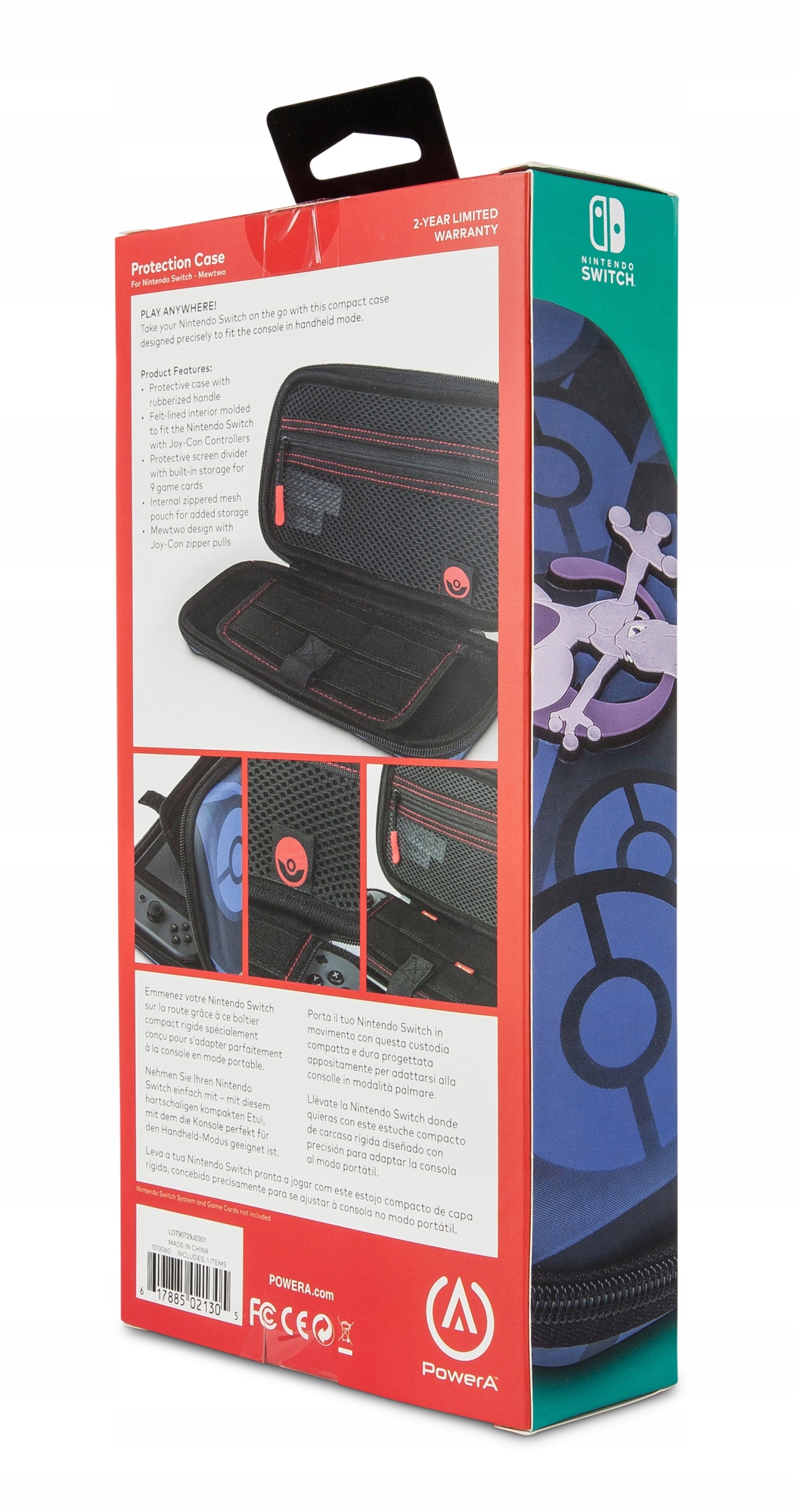 Консоль Nintendo Switch на подорожі завдяки цьому міцному, компактному випадку, розробленому точно так, щоб відповідати консолі в портативному режимі. Всередині ви знайдете тег з м'ячем Poké, екран для захисту екрану з місцем для дев'яти ігор та кишеню на блискавці. Цей портативний випадок із силуетом Mewtwo дає вам свободу гри на ходу.