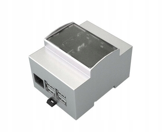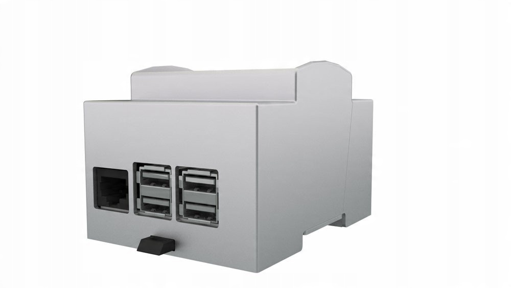 Підготовлений для кріплення на стіні за допомогою DIN-рейки (EN 60715). Усередині корпусу достатньо місця, щоб вставити будь-які плати розширення HAT разом із Raspberry Pi.