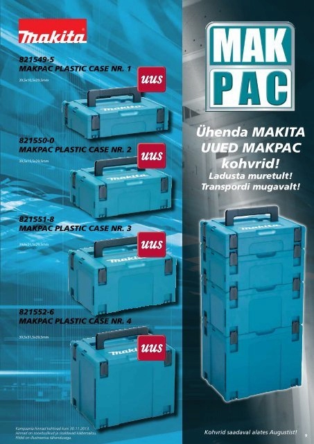 Системні чохли Makita MAKPAC є чохлами для електроінструментів, і в поєднанні з відповідними вставками вони є. одна з найкращих систем зберігання та транспортування на ринку інструментів. Валізи Makita MAKPAC відносяться до професійної системи Makita, вони легко з'єднуються за допомогою спеціально розроблених гачків, можна легко з'єднати кілька валіз для зручного транспортування і зберігання електроінструментів. Завдяки великій ручці їх зручно переносити. Обладнання Makpac також підходить для інших систем, наприклад Festool.