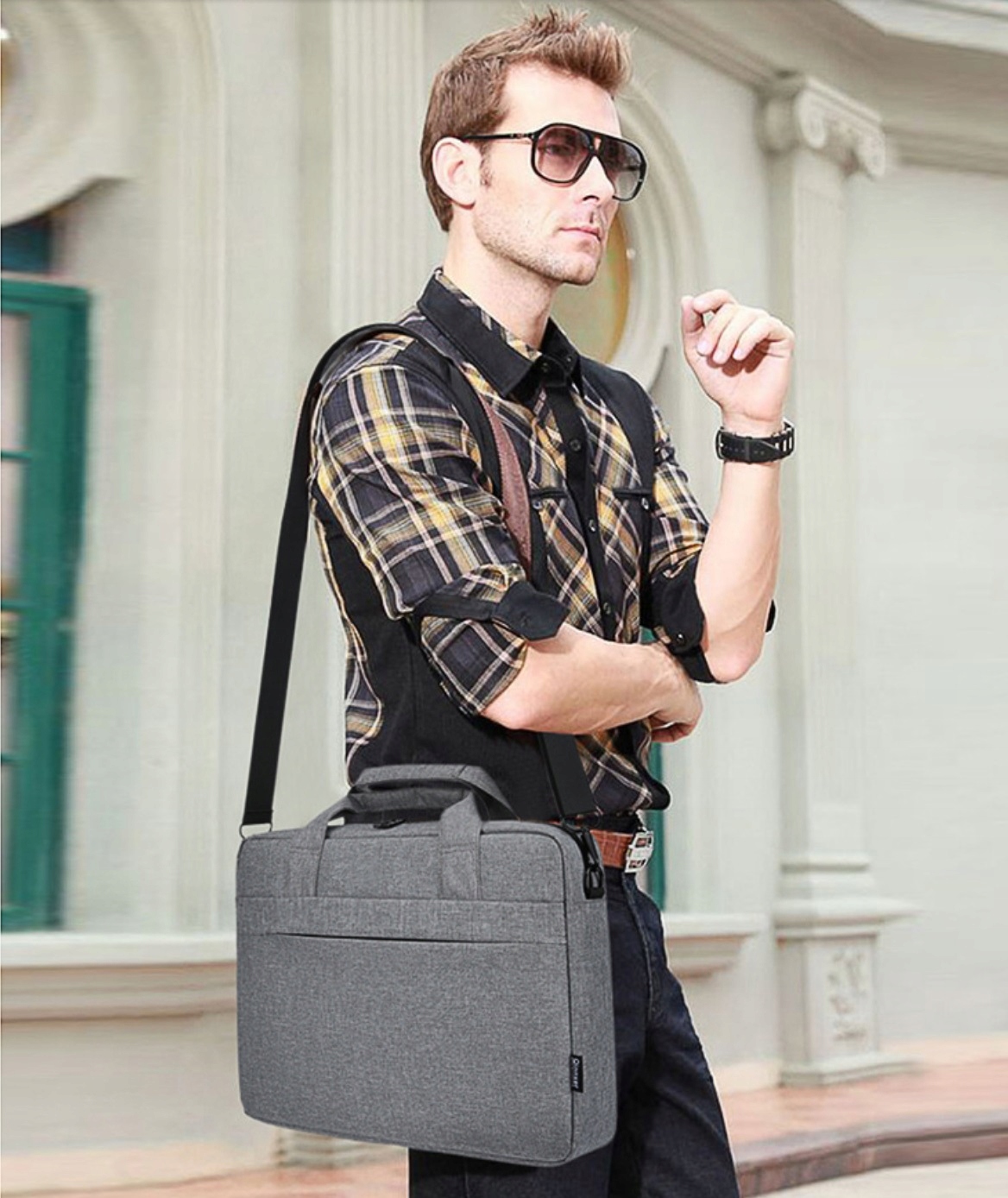 Чохол виготовлено з водонепроникного матеріалу. Пристрій разом із захистом виглядає естетично і ідеально вписується в будь-який стиль (урочистий і неформальний). Вам не доведеться турбуватися про подряпини чи механічні пошкодження, адже внутрішня частина виготовлена з ніжного матеріалу, приємного на дотик. Сумка стане хорошим супутником у подорожі > і в щоденних справах. Чохол має додаткові відділення, у які можна помістити інші аксесуари, такі як телефон, гаманець, навушники, миша або стилус/ручка.