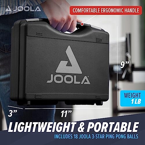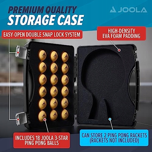 Корпус Joola Tour надає кожному гравцеві інструмент для комфортного перенесення та зберігання необхідного обладнання для пінг-понгу. Якість, довговічна піна, може зберігати загалом 18 кульок і дві (2) ракетки. Система Leasy-Ople Double Snap Lock дозволяє надійно закрити корпус, зберігаючи вміст чистим, сухим та безпечним. У цьому захисному випадку входять 18 3-зіркових, 40-мм помаранчевих змагань з конкуренції в тенісі. Почніть грати як чемпіон з обладнанням, розробленим для чемпіонів! Joola - гордий спонсор національної збірної США.