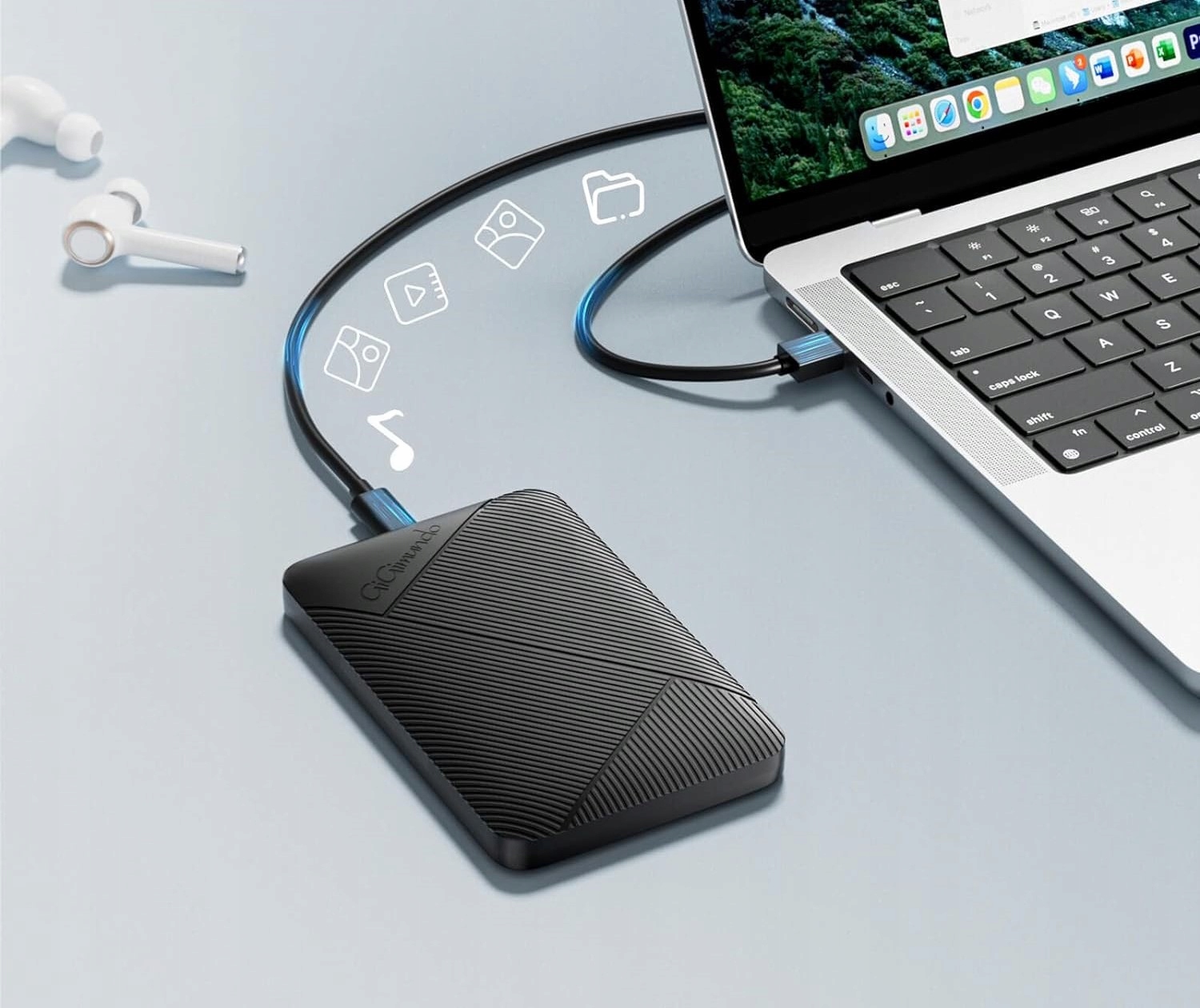 - Швидкість передачі даних 6 Гбіт/с – корпус жорсткого диска 2,5" підтримує протоколи UASP і TRIM, стандартний роз’єм USB 3.1 Gen 2 Type C, який може досягати швидкості передачі до 6 Гбіт/с, що становить 70% швидше, ніж традиційний USB 3.0, і значно зменшує затримку. Тому ви можете передавати ігри/музику/файли за лічені секунди завдяки чохлу GiGimundo 2,5".