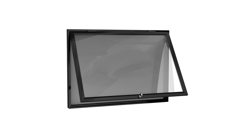 Вітрина виконана з алюмінієвих профілів, задня частина - магнітна пластина. За бажанням можлива заміна магнітної пластини на коркову. Двері на замок (в комплекті два). У набір входить набір магнітів. Склопакет виконано з оргскла товщиною 4 мм (AKRYLON XT). Вітрина оснащена світлодіодним підсвічуванням. Виріб стійкий до різних погодних умов, його можна встановлювати як на вулиці, так і всередині будівель.