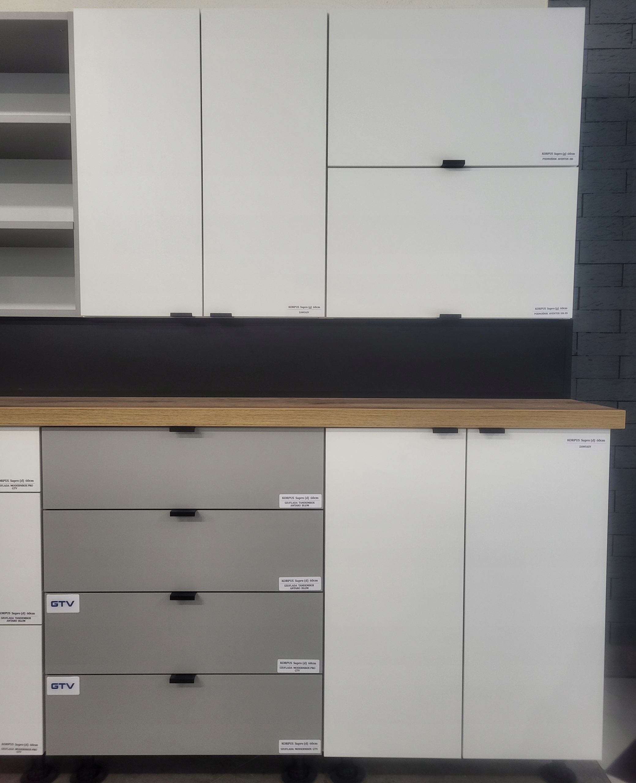 Фронти до тіл можна вибрати індивідуально, що дозволяє впровадити навіть найвибагливіші проекти, і ви створите кухню в дизайні та кольорах, про які ви лише мрієте. Багаті кольори меблевих дощок ламіновані, також ідеально вписуються в будь -який стиль закінчення вашої квартири.