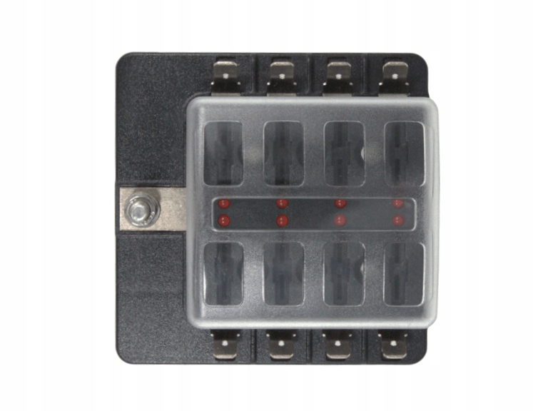 Основа корпусу виготовлена з пластику (PBT), а термінал із лудженої латуні. Червоний світлодіод вказує на несправність запобіжника. Прозорий корпус забезпечує захист від води і пилу і відкривається натисканням на засув. Параметри: