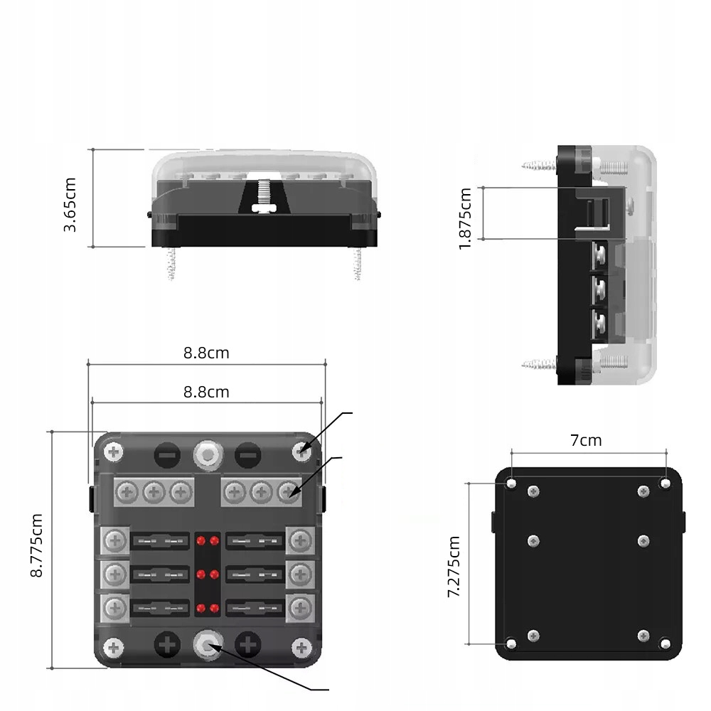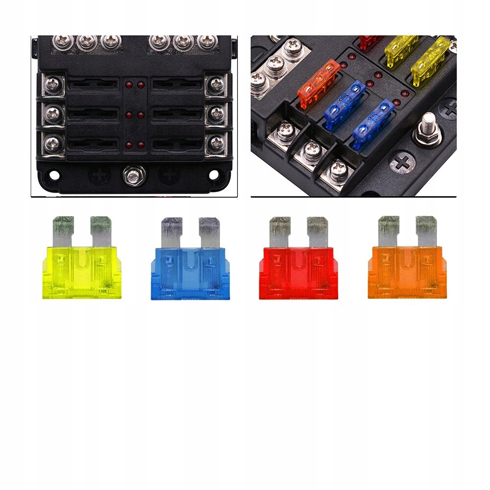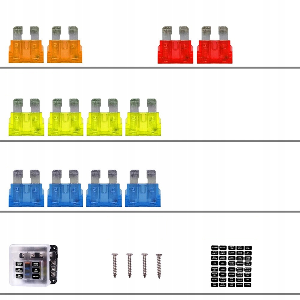 Корпус запобіжника з розеткою на 6 полюсів, блок запобіжників 12/24 В З ЕТИКЕТКОЮ НА ГВИНТІ ЗАПОБІЖНИКА