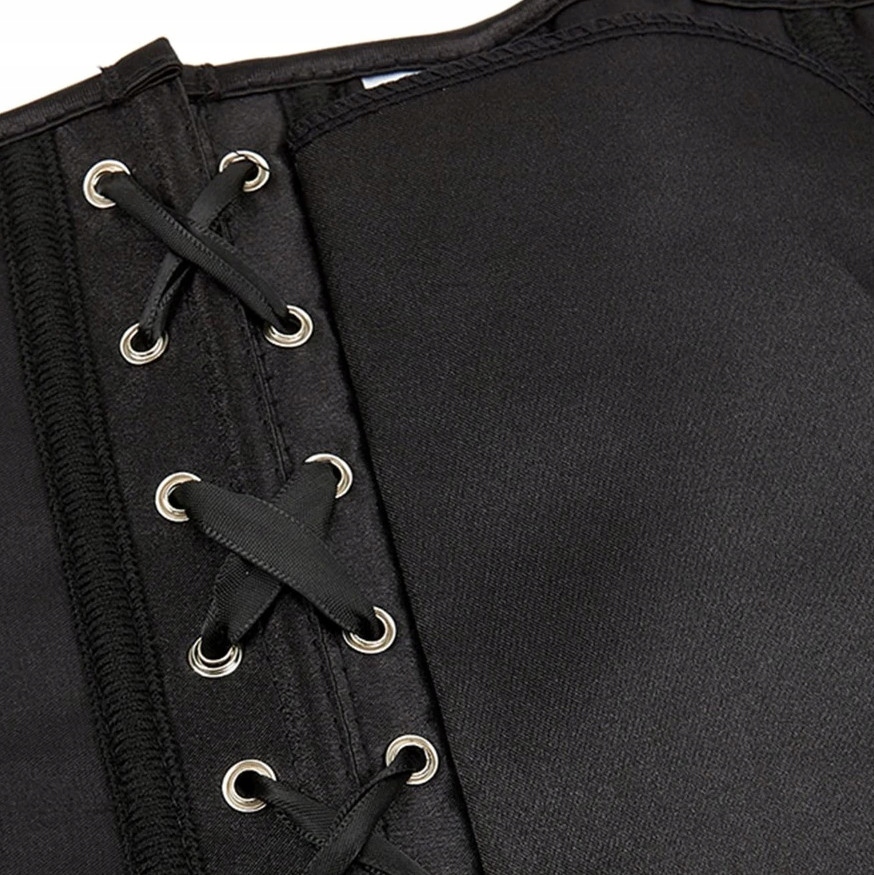 Зав'язаний корсет типу UNDERBUST з щільної приємної на дотик тканини з атласним переплетенням. Конструкція корсета складається з 14 кісточок.
