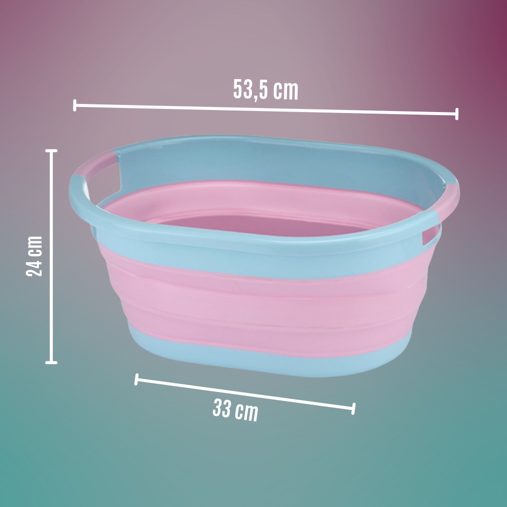 Багатофункціональна складна силіконова миска виготовлена з високоякісного пластику в поєднанні з міцним силіконом. Цей складаний кошик для білизни складається, коли він не використовується, що полегшує його зберігання.