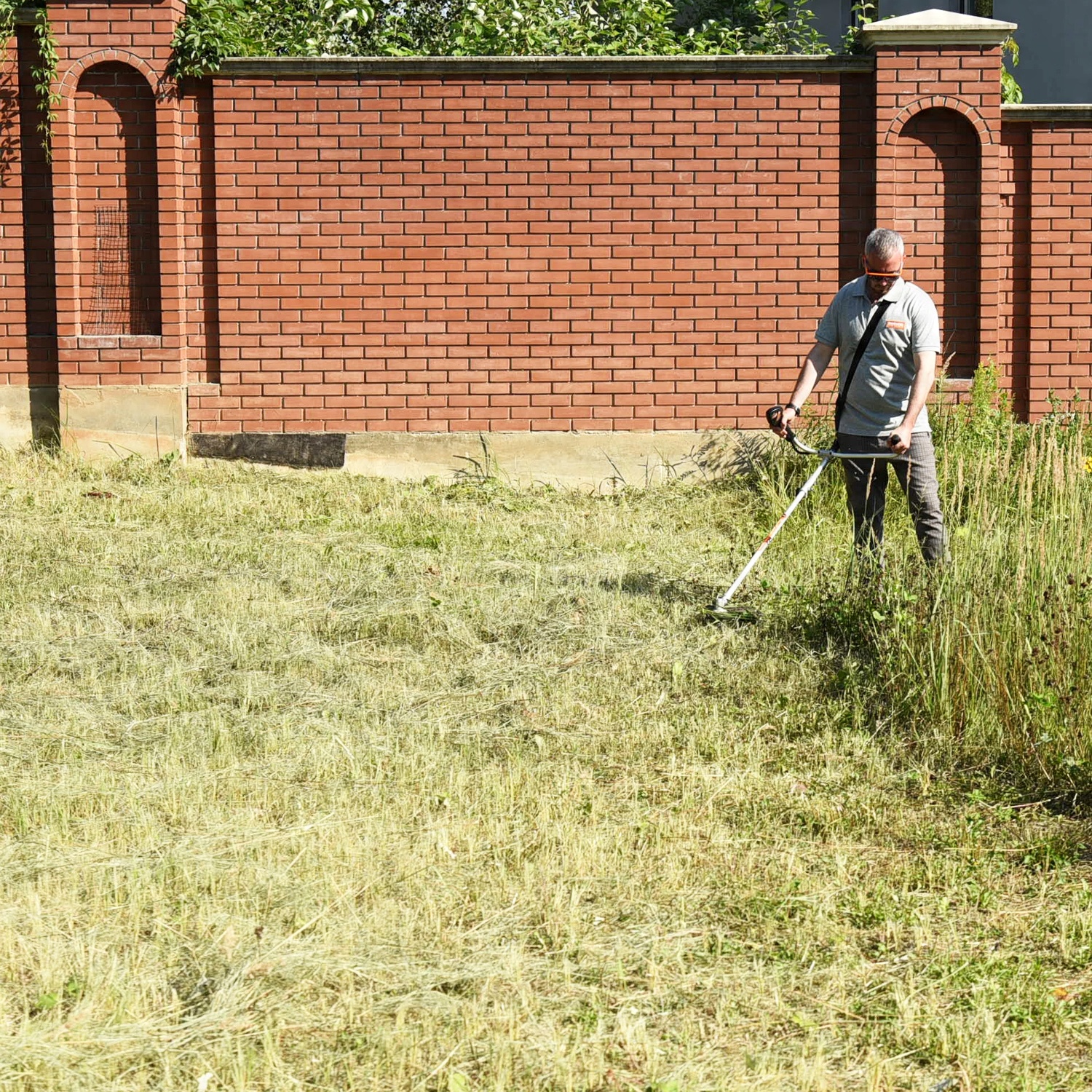 Акумуляторна мотокоса для косіння трави та кущів. Ця модель має складну алюмінієву ручку для зручного зберігання. У комплект входить тризубий ніж і головка з напівавтоматичною системою подовження струни.