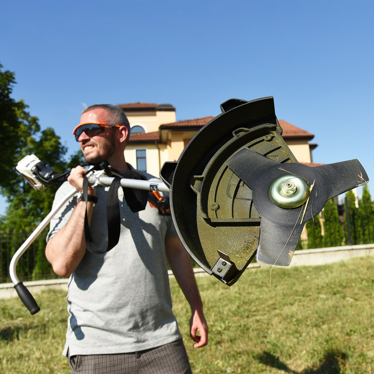 У міру зростання рослинності тримерну головку з подвійною нейлоновою ниткою можна замінити міцним ножем із трьома зубцями, що входить у комплект.