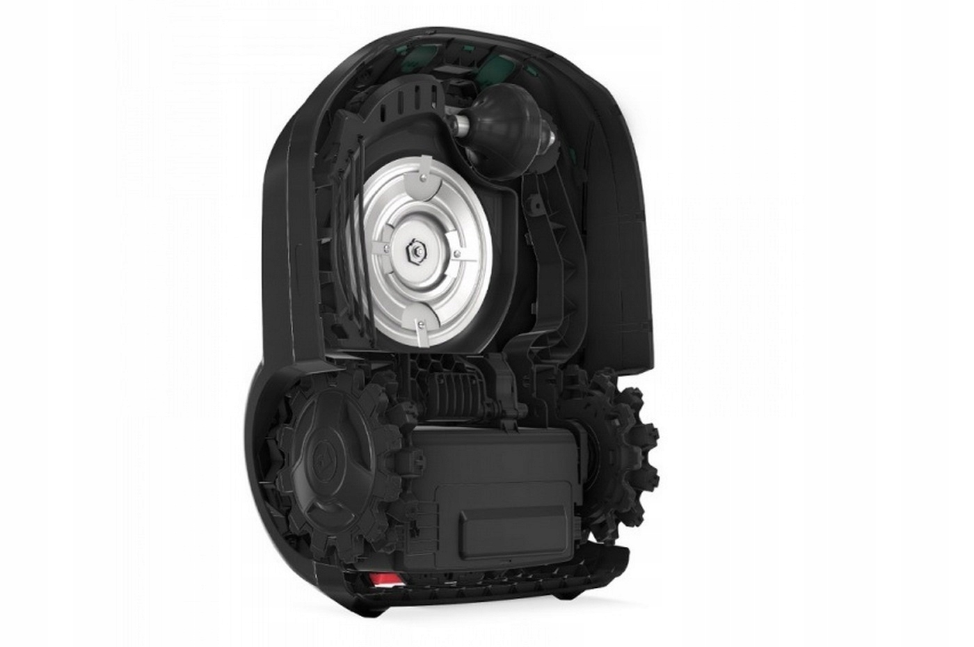 Представлена автономна косарка оснащена двома сучасними асинхронними двигунами - по одному на кожен привід колесо. Завдяки відсутності щіток ці двигуни тихіші і набагато менш ненадійні, ніж колекторні. Використання безщіткових двигунів зменшує силу струму, що спричиняє виділення тепла - підвищення температури на корпусі зменшується навіть під час інтенсивного використання в саду. Крім того, вони практично безвідмовні, не зношуються механічно, мають більш просту конструкцію та високу ефективність. Безщіточна технологія зводить потребу в обслуговуванні обладнання до мінімуму та суттєво продовжує термін його служби. Крім того, завдяки цьому робот працює тихіше, а його двигуни споживають менше енергії.
