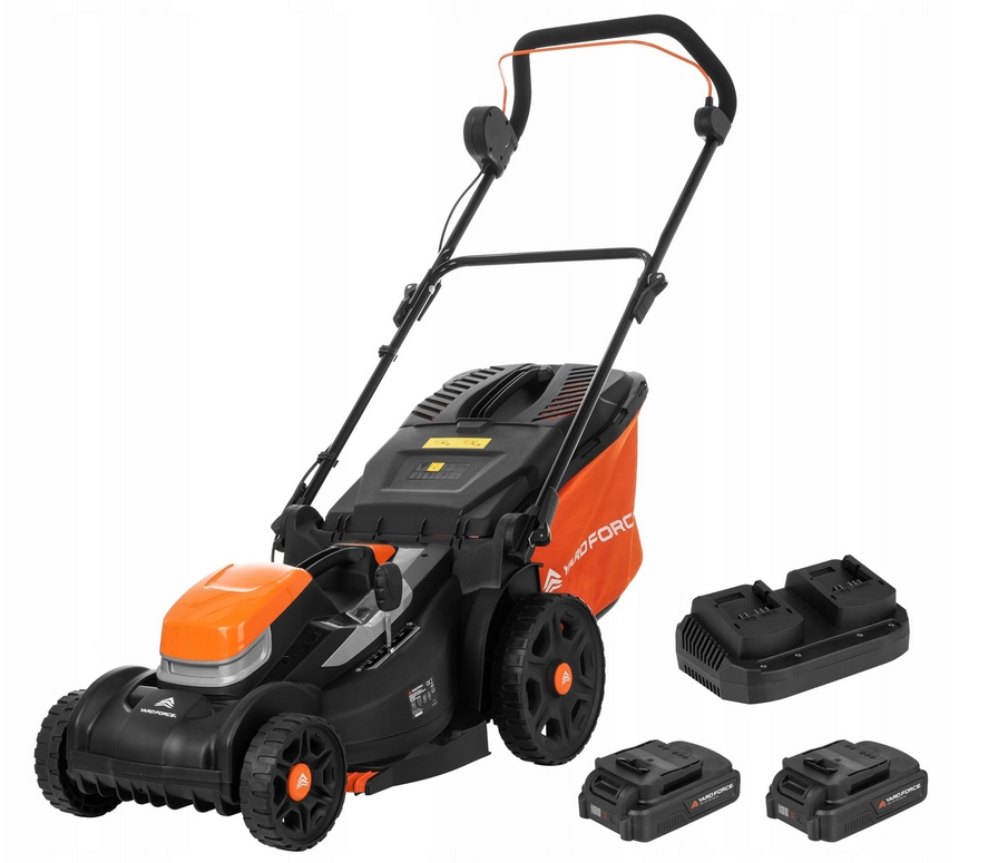 ✔ подвійний вхідний зарядний пристрій дозволяє заряджати 2 батареї У той же час. /b> Рінтоване центральне регулювання висоти скошування, полегшує висоту на всіх колесах одночасно. Полегшує зберігання косарки, також у вертикальному положенні.