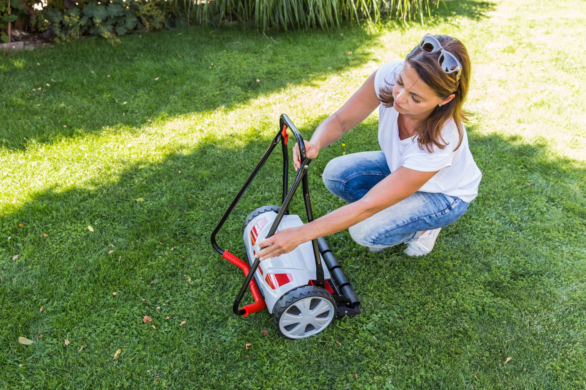 Ручна мотовила 38.1 HM Comfort із шириною зрізу 38 см є ідеальним партнером для газонів до 250 м². Висоту зрізу можна регулювати в чотири ступені від 14 до 35 мм. Завдяки тому, що шпиндель косарки оснащено 5 сталевими лезами та нижнім ножем, ви отримуєте точний та чистий зріз, а газон ідеально доглянутий. Колеса діаметром 220 мм рухаються дуже плавно навіть по нерівній місцевості. Завдяки компактному дизайну та малій вазі лише 7,8 кг, маневрена мотокоса є ідеальним партнером для догляду за газоном, навіть для невеликих звивистих садів. Також доступний 50-літровий травозбірник.