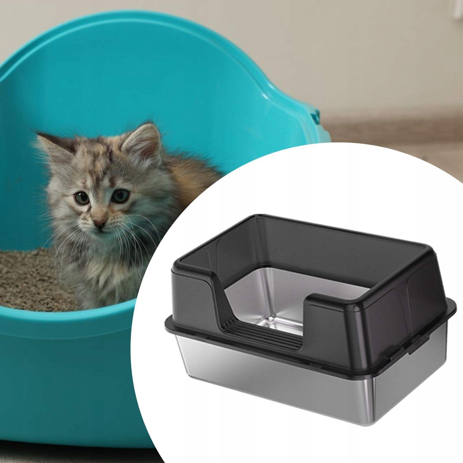 Котячий лоток з нержавіючої сталі, високий, захист від бризок, котячий лоток, котяча пісочниця, 50 см x 35 см x 28 см, чорний