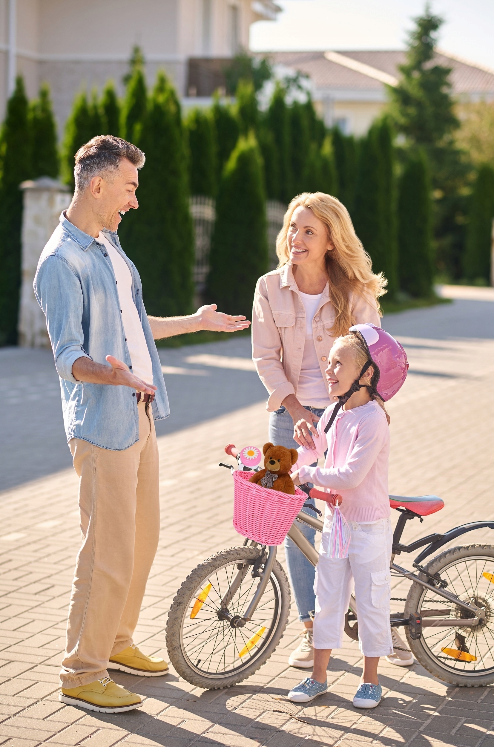 *️⃣ Уявіть собі - ваша юна мандрівниця їде на велосипеді мальовничою, сонячною стежкою, а ніжний весняний вітерець пестить її обличчя. Її дитячий сміх весело дзвенить у повітрі, наче дружні дзвіночки.