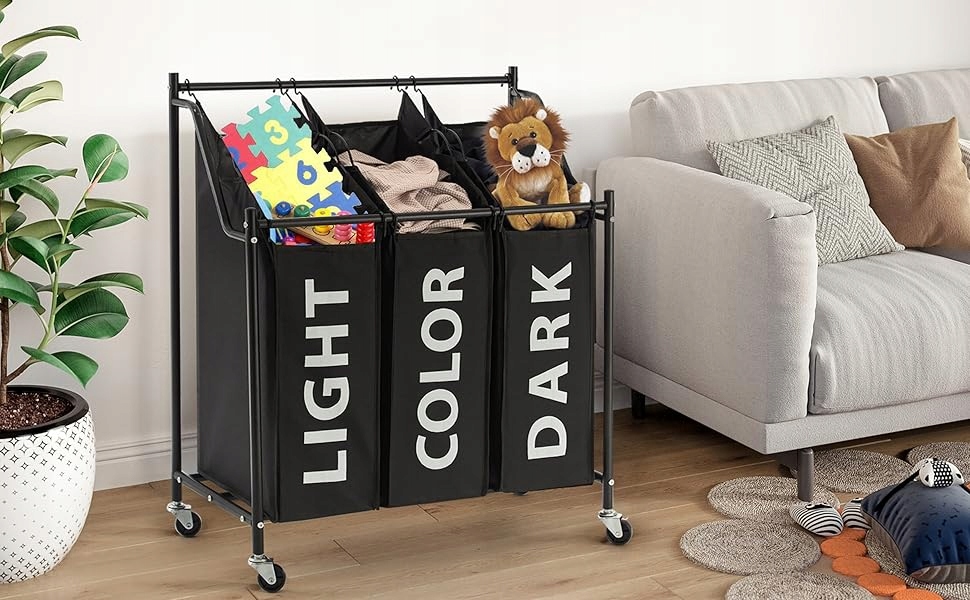 Кошик білизни, сортувальник нижньої білизни, 3 секційні зняті мішки, з ручками, колесами