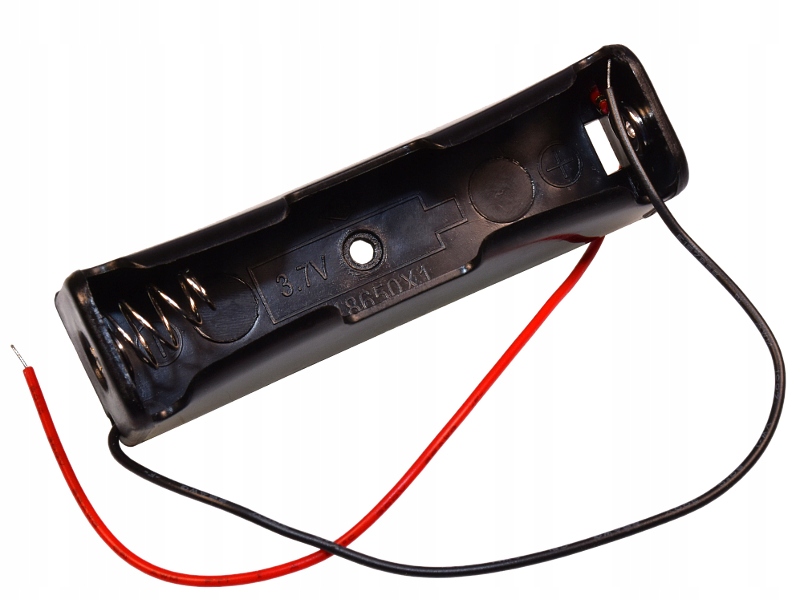 Кошик чорний із пластику, призначений для акумулятора 18650. В ньому виведені кабелі. Це забезпечує безпроблемний збір електроенергії з елемента. Монтаж і демонтаж клітини простий завдяки використанню гнучких пластин.