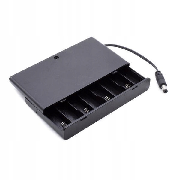 - Акумуляторний кошик 8xAA (R6) - кошик з кришкою з перемикачем - Гніздо 5,5x2,1 - 1 шт.
