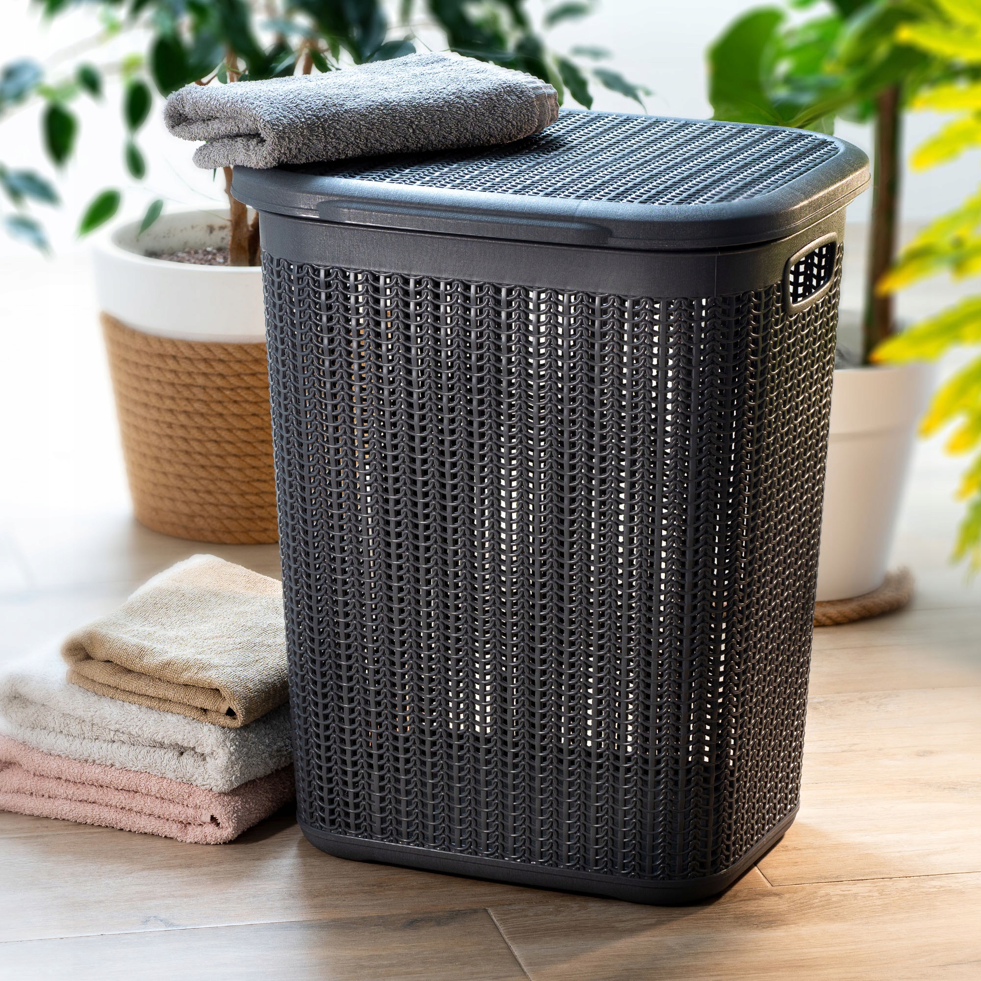 КОШИК ДЛЯ БІЛИЗНИ З КРИШКОЮ, ВЕЛИКИЙ 50 Л ГРАФІТОВИЙ