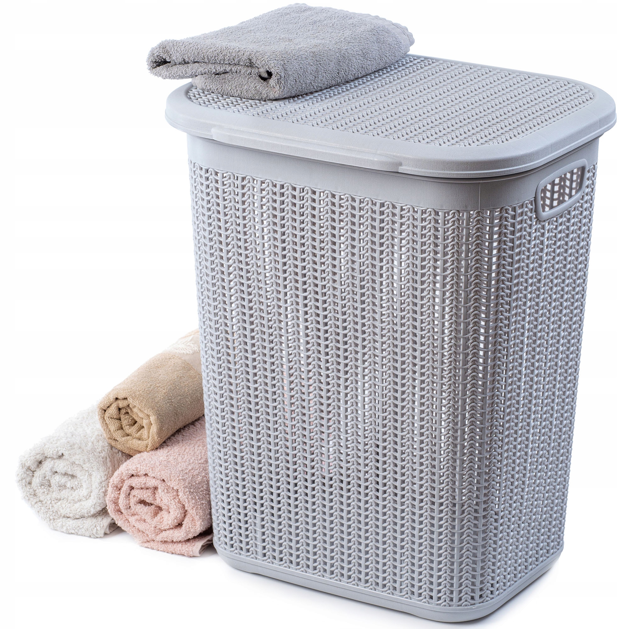 КОШИК ДЛЯ БІЛИЗНИ З КРИШКОЮ, ВЕЛИКИЙ 50 Л, СІРИЙ
