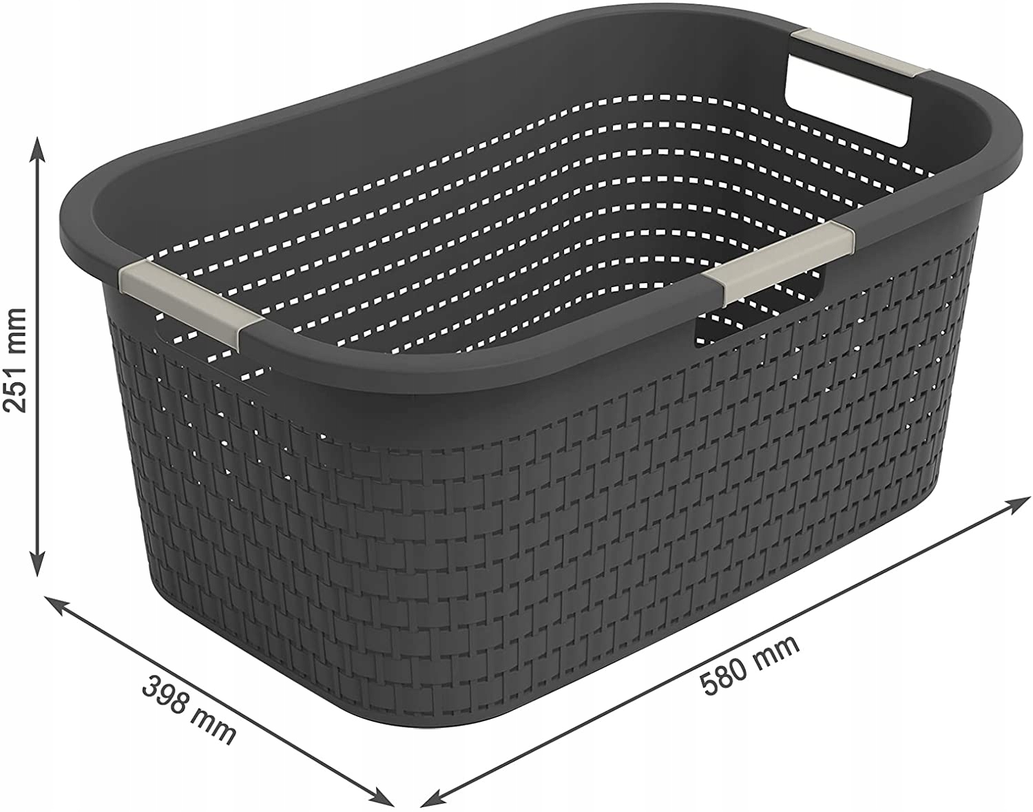 З 40-літровим кошиком для білизни Country від Rotho прання знову стає приємним. Він достатньо великий, щоб його можна було прати в пральній машині, а завдяки високоякісному матеріалу його можна повністю завантажити. Кошик для білизни залишається на місці, навіть якщо він повністю заповнений мокрою білизною. Три м'які зручні ручки і ергономічна форма кошика дозволяють зручно переносити його різними способами, наприклад однією рукою. Кошик для білизни Country виготовлений з високоякісного матеріалу. На всіх чотирьох сторонах кошика для білизни використовується складна структура з ротанга. Ці вентиляційні отвори забезпечують циркуляцію всередині контейнера для білизни та протидіють неприємним запахам після тривалого прання вологої білизни. Високоякісний пластик і якість виготовлення забезпечують тривалий термін служби.