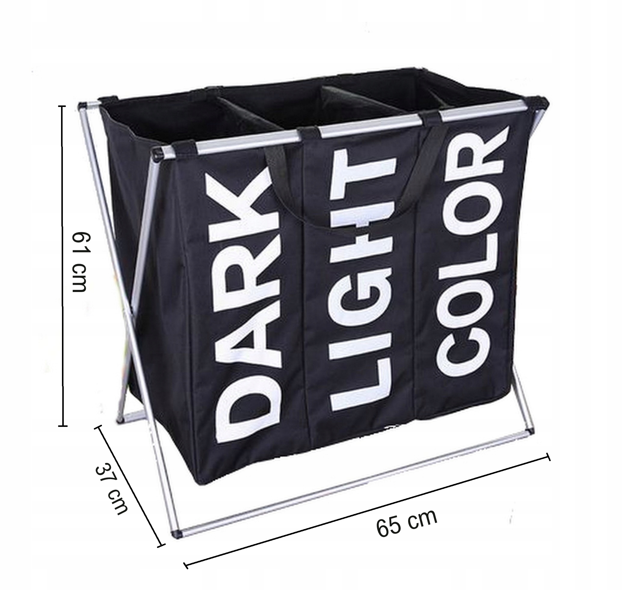 Кошик для білизни з 3 відділеннями, виготовлений з водонепроникного та міцного матеріалу на алюмінієвому каркасі, полегшить кожній господині контроль за брудною білизною, рушниками, нижньою білизною тощо. Кожне відділення має маркування та закривається окремим шнурком.