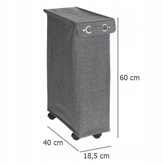 Кошик для білизни ідеально виконає своє завдання у домашній ванній кімнаті, спальні, гардеробі чи молодіжній кімнаті! Кошик для білизни - це дуже корисний елемент кімнат. Всередині нього ви можете покласти одяг та інші миття речей, щоб вони не викликали непотрібного безладу в навколишньому середовищі. Продукт займає мало місця, тому він чудово працює в невеликих кімнатах, розміщених у кутку або за шафою в спальні, гардеробі, дитячій чи молодіжній кімнаті. Продукт потужністю 43 літри та розмірів 18,5 х 60 х 40 см, виготовлений з найвищої якості матеріалів - поліестер та бавовна. Додатковою перевагою кошика є чотири пластикові колеса, завдяки якому ви можете швидко та легко перенести продукт у будь -яке місце та практичну обкладинку, обладнану ручкою, що полегшує відкриття та закриття.