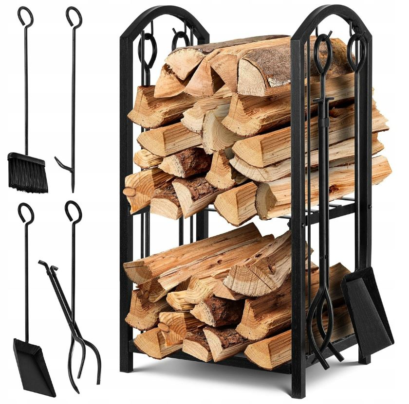 ✅ Дворівнева підставка вміщує не тільки дрова, а й усі необхідні речі - від розпалу до сірників