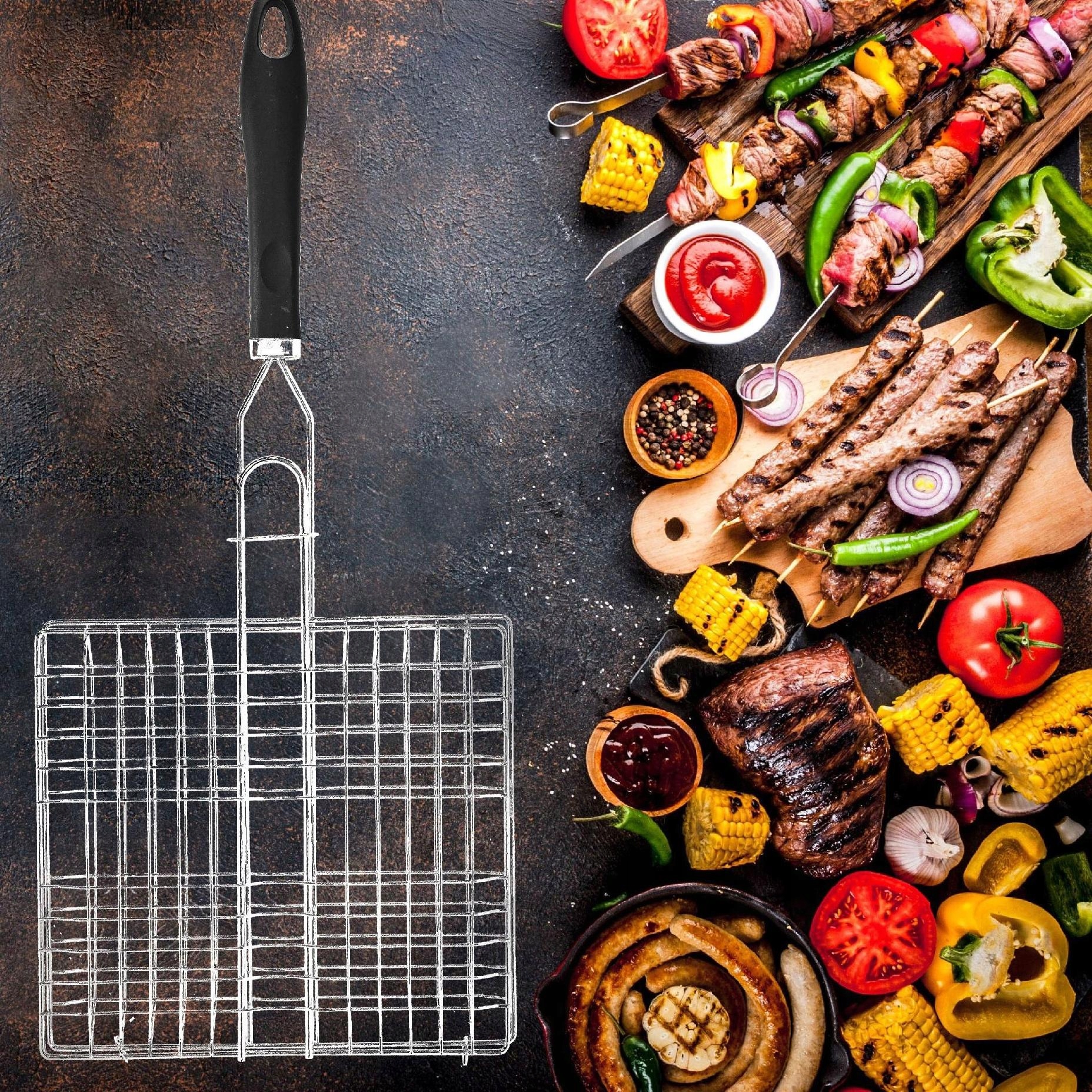 Кошик для гриль -гриль на грилі для гриля м'яса з рослинної риби 22x24 Закрито