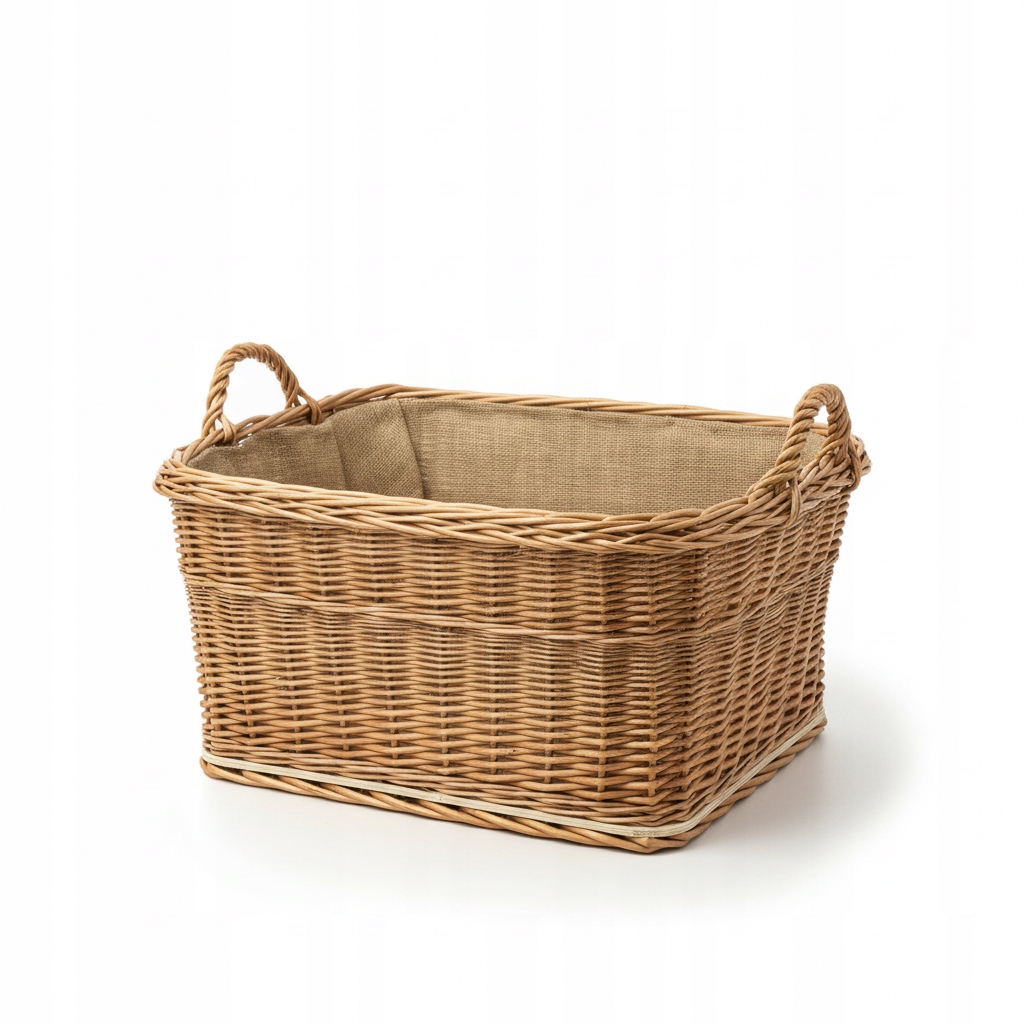 ✅ Стійка прямокутна конструкція ➤ Широке дно, укріплене фанерою, посилені краї, міцна плетена ручка.