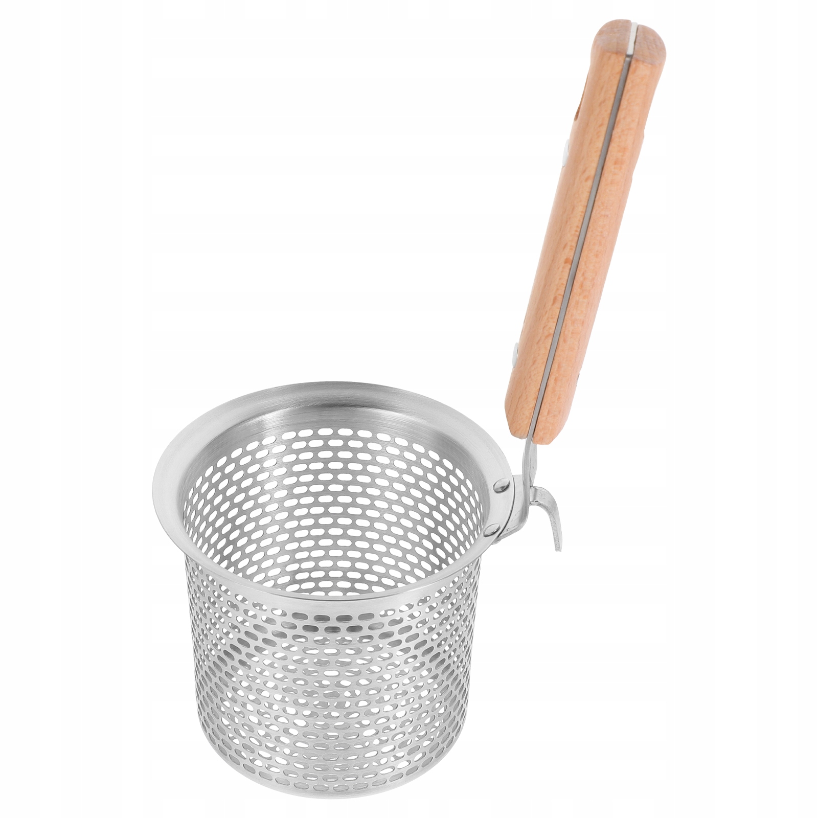 КОШИК ДЛЯ МАКАРОНІВ З НЕРЖАВІЮЧОЇ СТАЛІ З ДЕРЕВ'ЯНОЮ РУЧКОЮ КУХОННА СІТКА PASTA