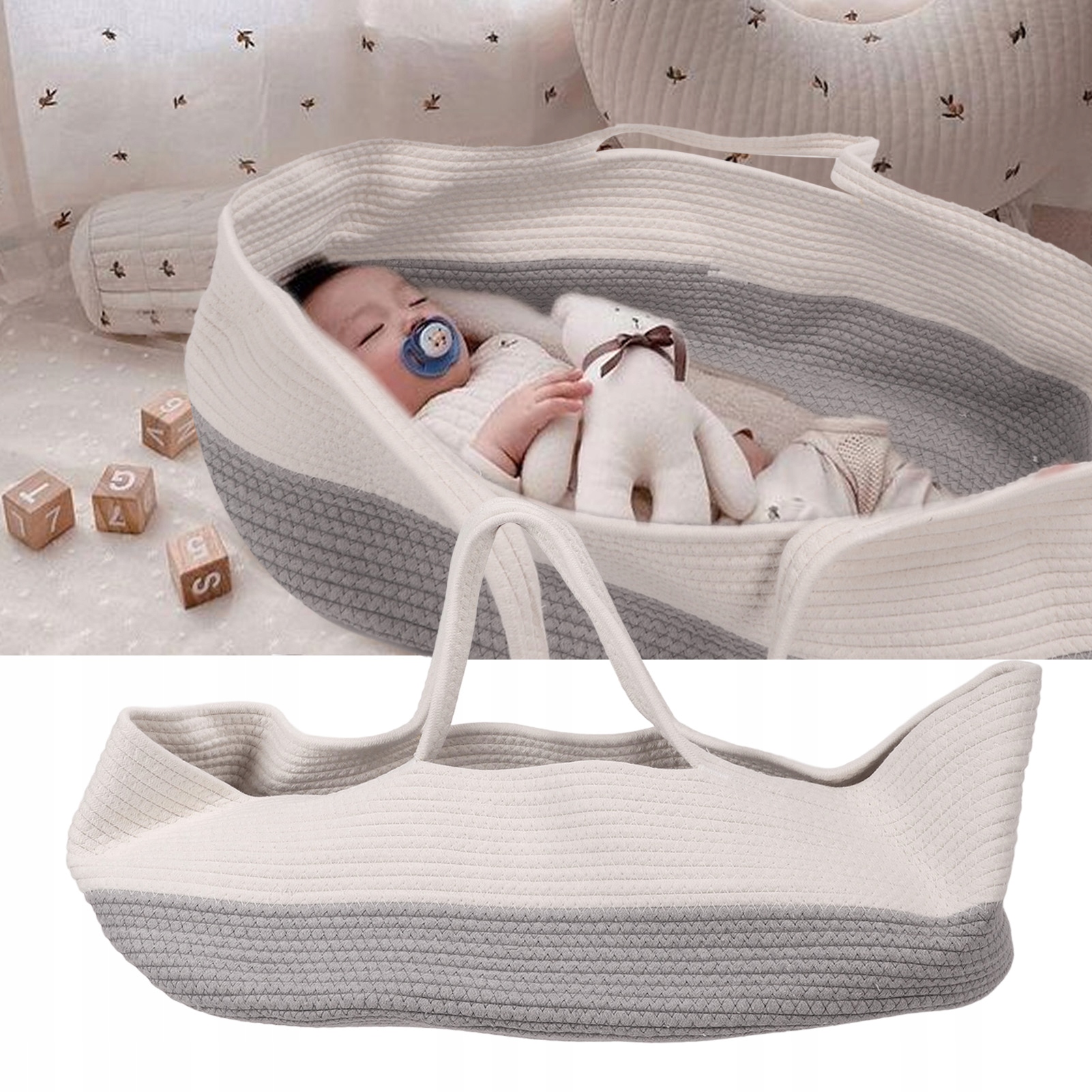 3. БАВОВНЯНА МОТУЗКА: Цей дитячий кошик має екологічно чисте бавовняне мотузкове переплетення, тканина м’яка, приємна на шкіру та дихаюча, не завдає шкоди шкірі дитини.