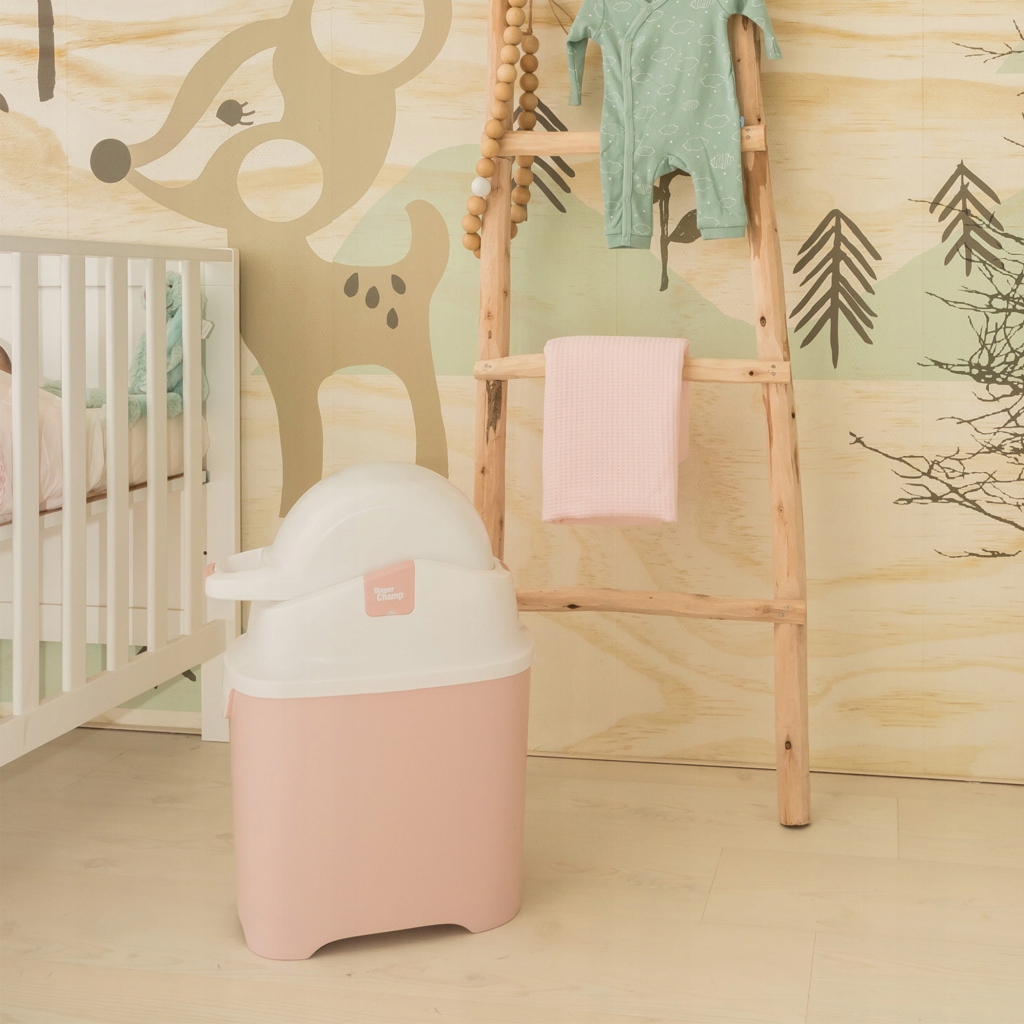 Унікальний кошик підгузників підгузників завдяки запатентованій, тісній системі забезпечує захист від неприємних запахів та бактерій у дитячій кімнаті або в будь -якій точці вашого інтер’єру. Просто покладіть використаний підгузник у отвір у кришці відро, повернувши ручку, підгузник впаде у сміття і повернувши його назад, кошик готовий до наступного використання. Все це однією рукою, тож ви можете тримати дитину з іншою. Спеціальна система прокладки зберігає запах всередині кошика.